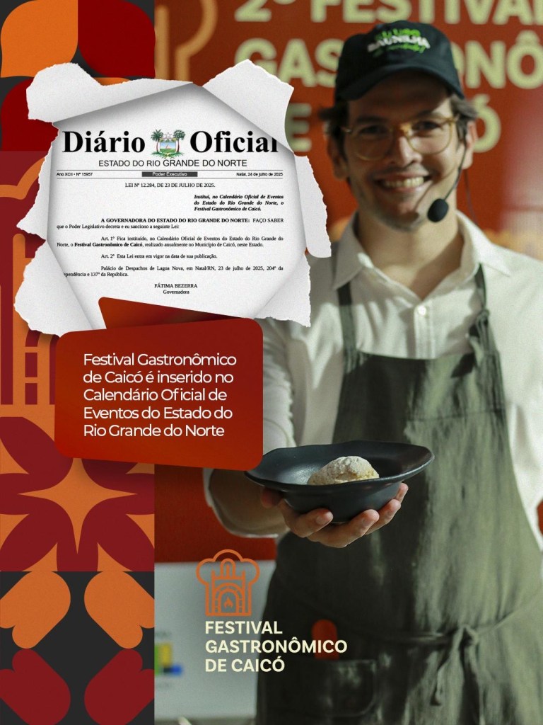 O Festival Gastronômico de Caicó agora integra oficialmente o Calendário de Eventos do Rio Grande do Norte. A sanção foi assinada pela governadora Fátima Bezerra por meio da Lei nº 12.284, de 23 de julho de 2025, e publicada no Diário Oficial do Estado em 24 de julho. A proposta é de autoria do deputado estadual Adjuto Dias.