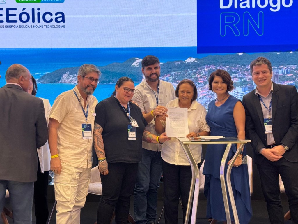 O anúncio foi feito durante a abertura do encontro, que reuniu representantes do setor público e privado. Estiveram presentes a governadora Fátima Bezerra, a presidente da ABEEólica, Elbia Gannoum, o prefeito de Currais Novos, Lucas Galvão, o diretor do Idema, Werner Farkatt, José Borges (Casa dos Ventos), Francisco Galvão (Ellera), além de Janaina Medeiros e o professor Marcos Nascimento, do Geoparque Seridó.