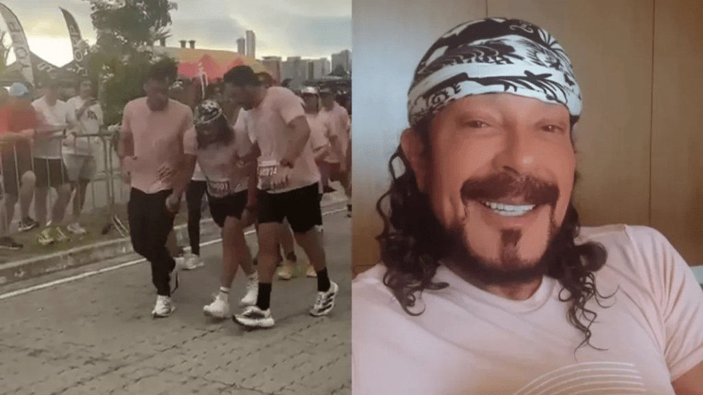 “Me recuperando, viu? Saí cedo demais, comi um negócio, fiquei me sentindo mal, passei, o estômago ficou ruim. Mas deu tudo certo, a corrida foi linda e eu tô aqui, já tô indo pro palco de novo. Essas coisas acontecem, sabe? Rapaz, poxa vida!”, disse o cantor.