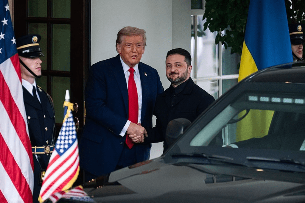 “Acho que se tudo correr bem hoje. Teremos uma ‘trilateração’, e acho que haverá uma chance razoável de acabar com a guerra quando fizermos isso”, disse Trump a jornalistas, ao lado de Zelensky, no Salão Oval.