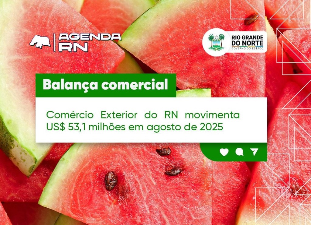 O Rio Grande do Norte alcançou um desempenho relevante nas transações internacionais em agosto de 2025. Com a corrente de comércio exterior – resultado da soma das exportações com as importações – o estado registrou movimentação total de US$ 53,1 milhões, composta por US$ 23,3 milhões em exportações e US$ 29,8 milhões em importações.