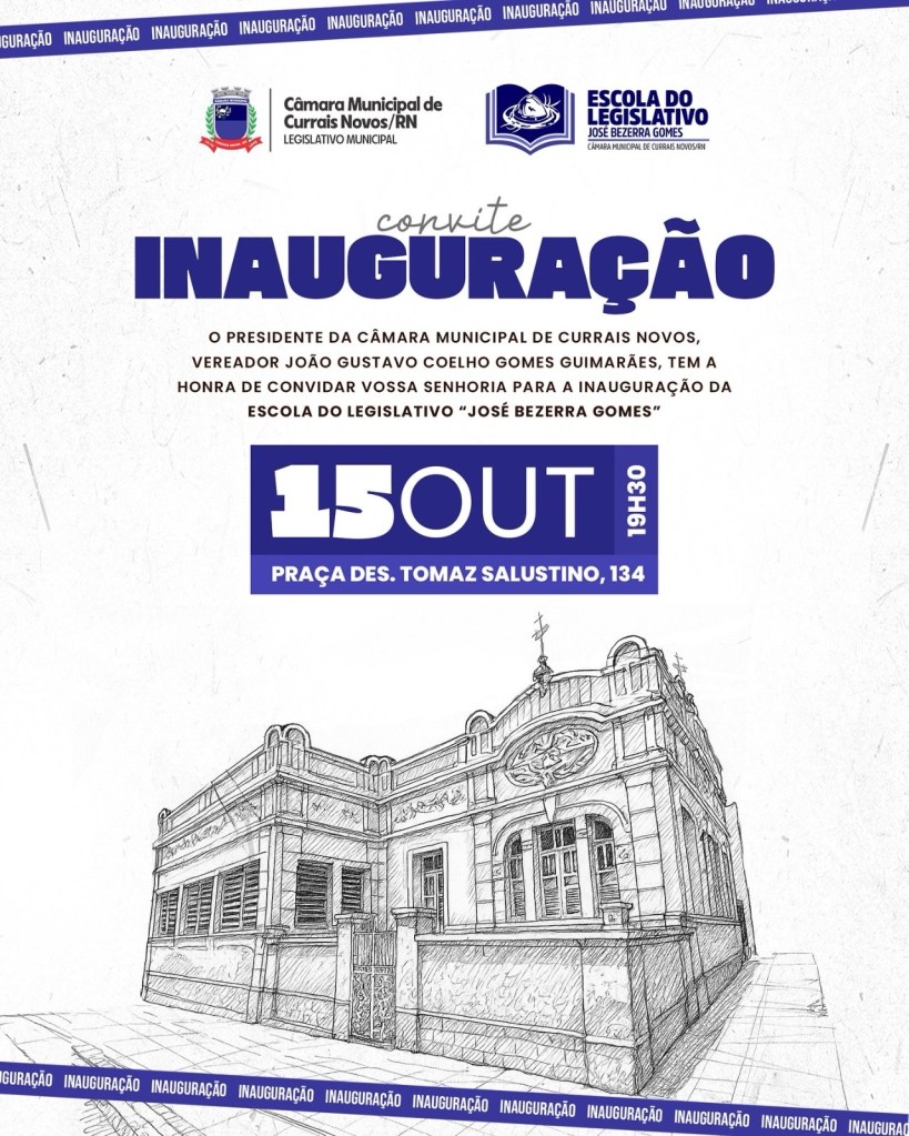 A Escola do Legislativo José Bezerra Gomes vive, nesta quarta-feira (15), um momento histórico. Em plena noite de celebração pelos 135 anos de emancipação política de Currais Novos, a instituição inaugura suas novas instalações, agora sediada em um prédio de grande relevância para a memória do município.