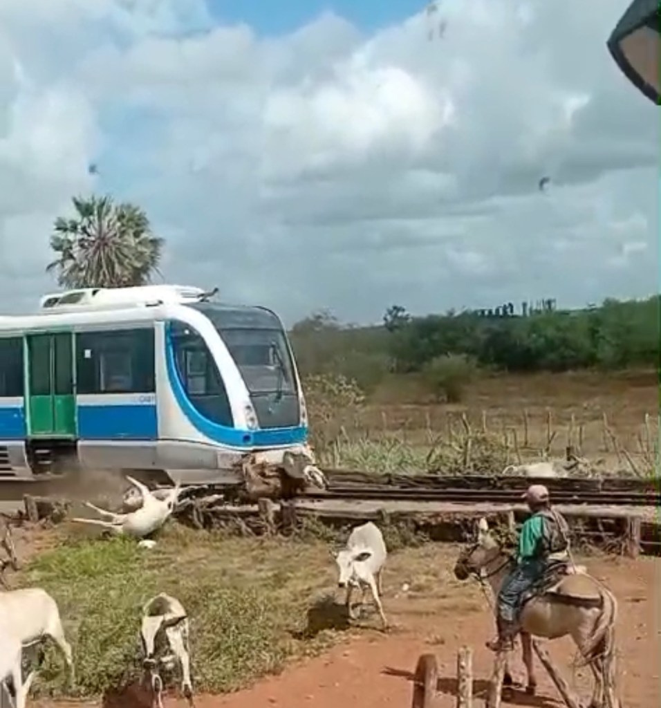 Um trem da CBTU colidiu na manhã (ou tarde, a confirmar) de hoje com animais que atravessavam uma passagem clandestina nos trilhos entre as estações Ceará-Mirim e Lagoa Grande, na Linha Norte do sistema ferroviário urbano de Natal.