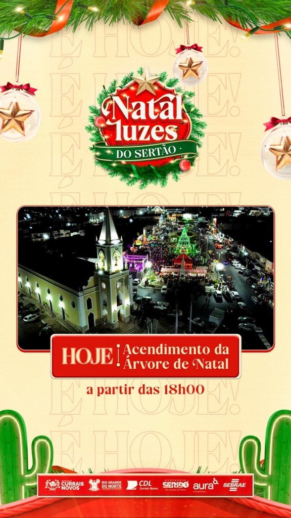 Currais Novos entra oficialmente no clima natalino nesta quarta-feira, 19 de novembro, com a abertura do Natal Luzes do Sertão, um dos eventos mais aguardados do fim de ano no município. A festa começa a partir das 18h, no Centro da cidade, com uma programação especial que promete emocionar o público presente na Praça Cristo Rei.