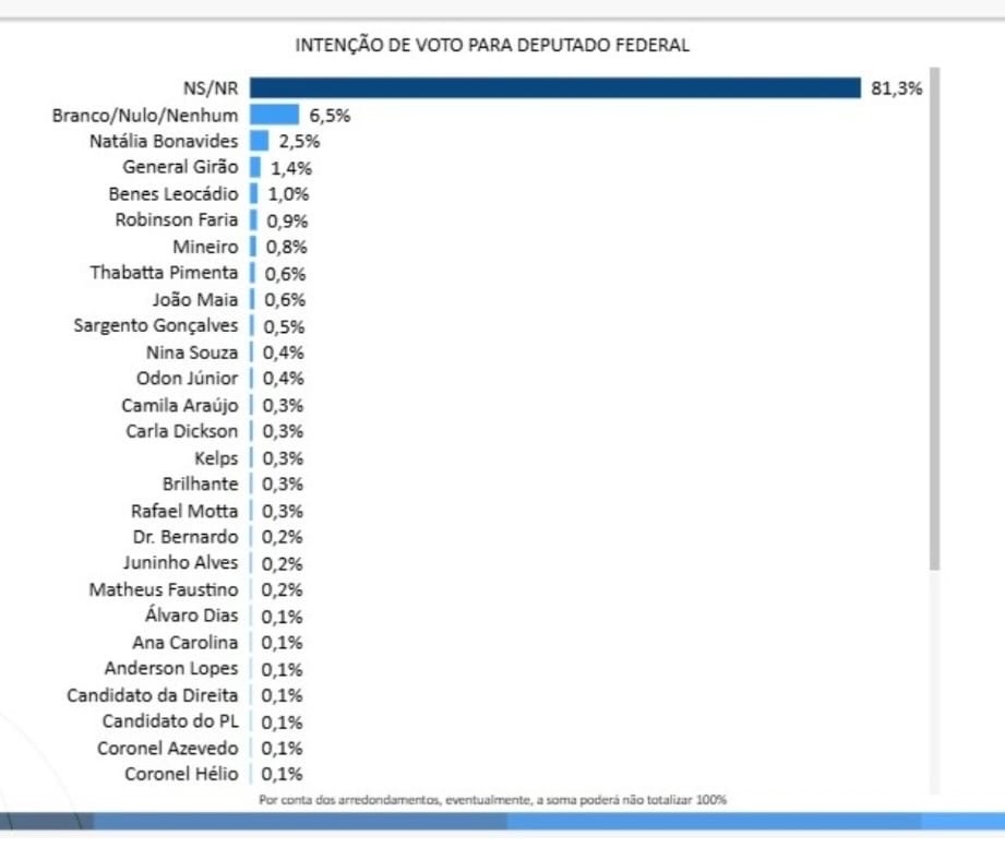 O resultado da pesquisa fortalece o nome de Odon Júnior no cenário político estadual e o coloca entre as principais referências da região do Seridó na corrida por uma vaga na Câmara dos Deputados.