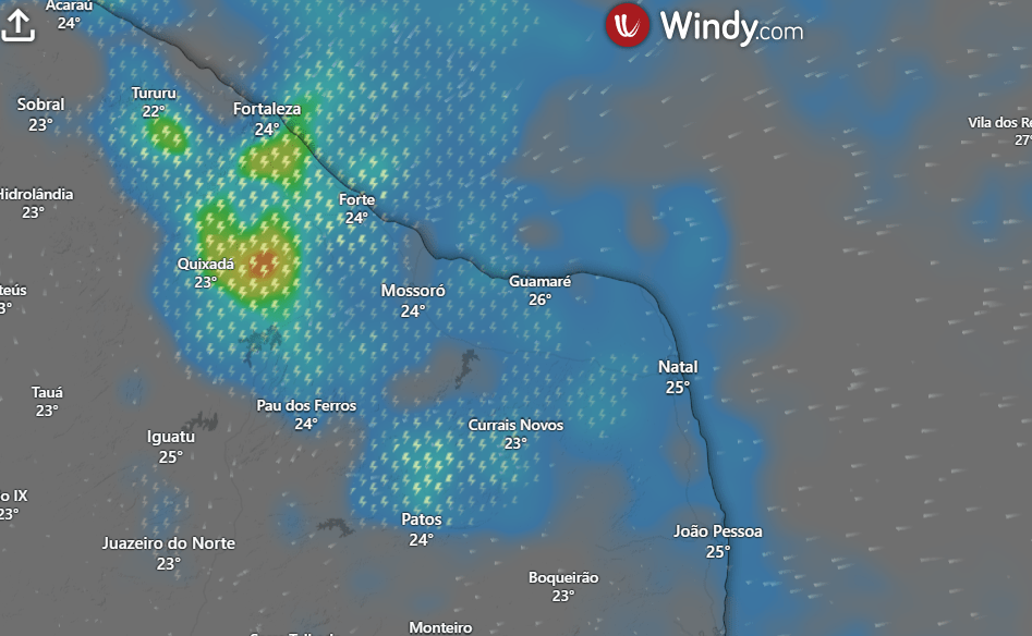 - Sexta-feira (6): modelos apontam chuvas esparsas ou pancadas rápidas em algumas áreas do Seridó, com probabilidade maior de chuva ao longo do dia.
