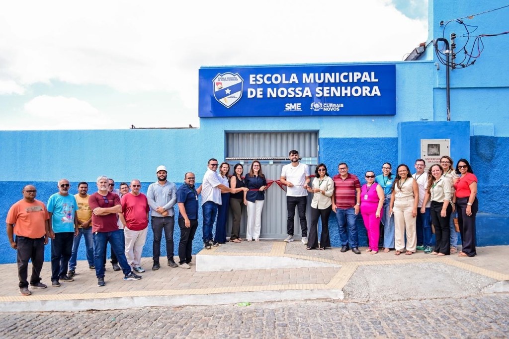 A Prefeitura de Currais Novos realizou, de forma simbólica, na manhã desta quinta-feira (12), a entrega da reforma da Escola Municipal de Nossa Senhora, uma das mais tradicionais instituições de ensino do município. Fundada em 28 de fevereiro de 1943 pelo Monsenhor Paulo Herôncio, a escola completa 83 anos de história dedicados à educação de gerações de currais-novenses.
