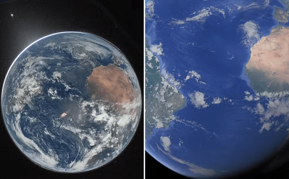 Um dos cliques, realizado pelo comandante Reid Wiseman, destaca diferentes fenômenos visíveis ao redor do planeta. Duas auroras aparecem em regiões opostas — uma no canto superior direito e outra no inferior esquerdo — enquanto a luz zodiacal surge no canto inferior direito, perceptível no momento em que a Terra eclipsa o Sol. À esquerda da imagem, uma área em tom marrom identifica o continente africano.